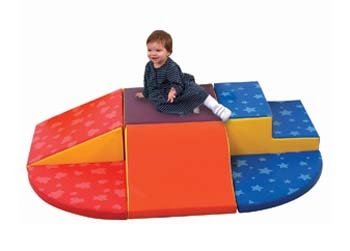 The Children's Factory was born in the attic of Mike and Barbara Richter in Kirkwood, MO in early 1982. Their vision was to create soft play environments in which children could safely play. The first product was a basic 3D animal shape sized perfect for a child. From here other products developed and soon the company was growing at a fast rate. Today the company employs over 100 people in a warehouse facility that encompasses over 100,000 square feet. Soft, safe, creative play is our passion. Our products are designed towards ASTM standards and our materials pass or exceed the CPSIA requirements Six movable, appealing soft shapes fit together in excellent ways. Expanded vinyl patterned covers invite adventurous gross motor play. Ages: 6 months - 2 years. Length: 60". Width: 40". Height: 10".